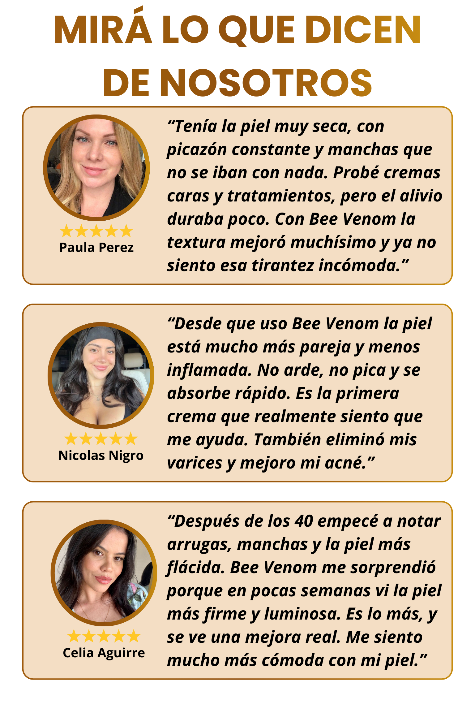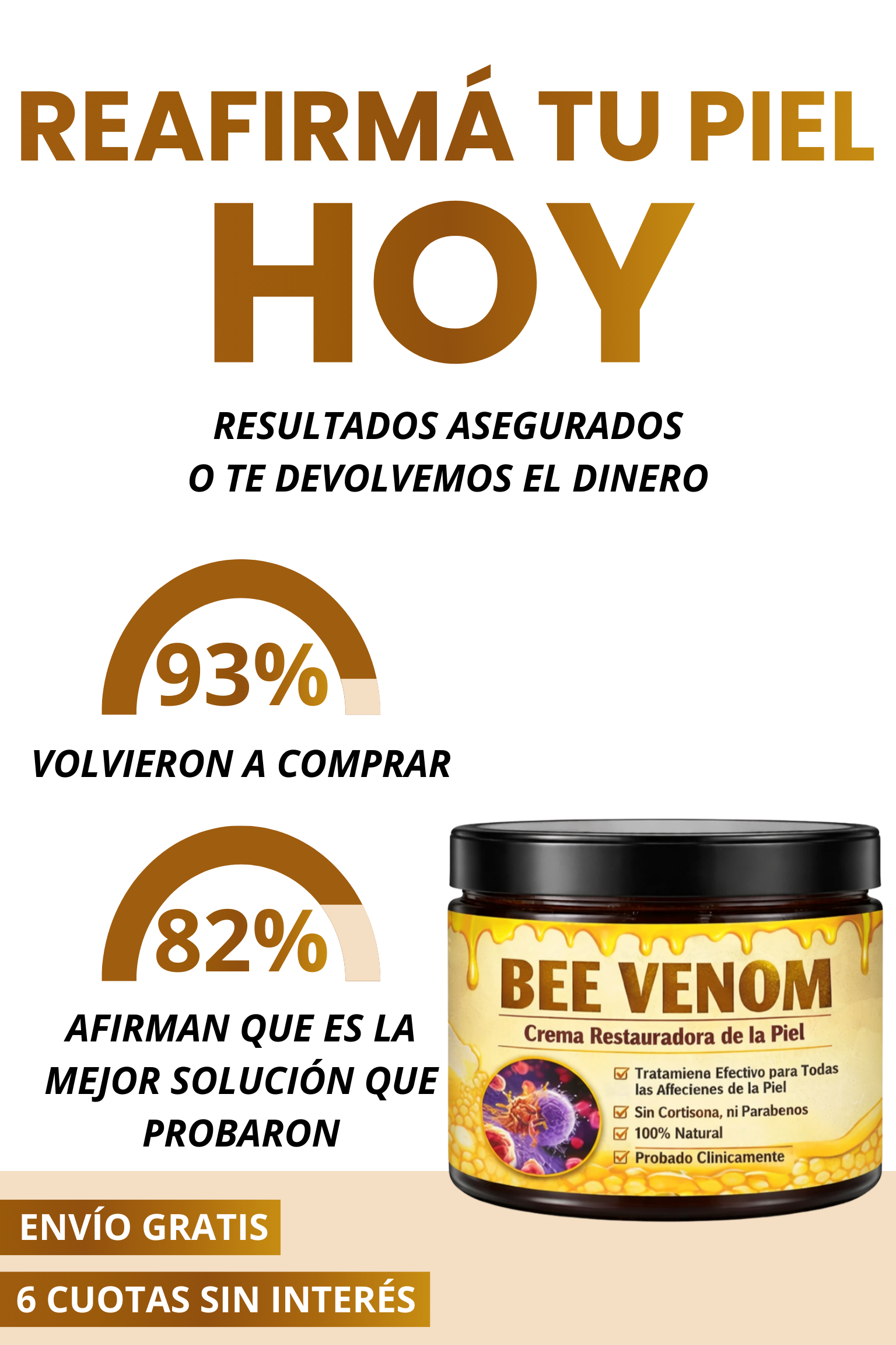 Sí. Bee Venom está pensada como una solución todo en uno. Ayuda a mejorar arrugas y líneas finas, manchas, piel seca o áspera, marcas y cicatrices, enrojecimiento, picazón y flacidez. Por eso muchas personas dejan de usar varias cremas y se quedan solo con esta.